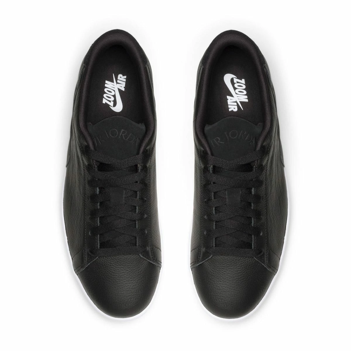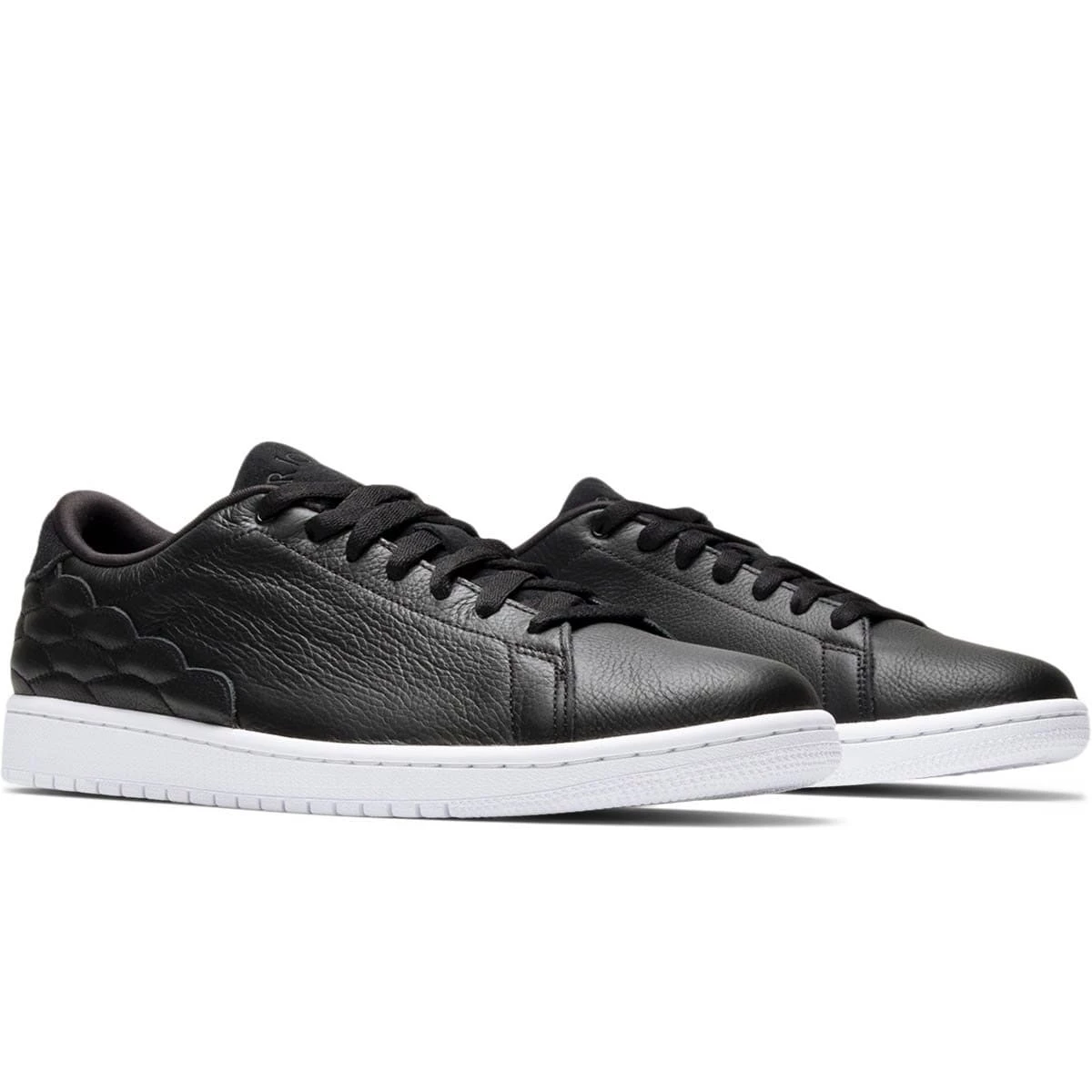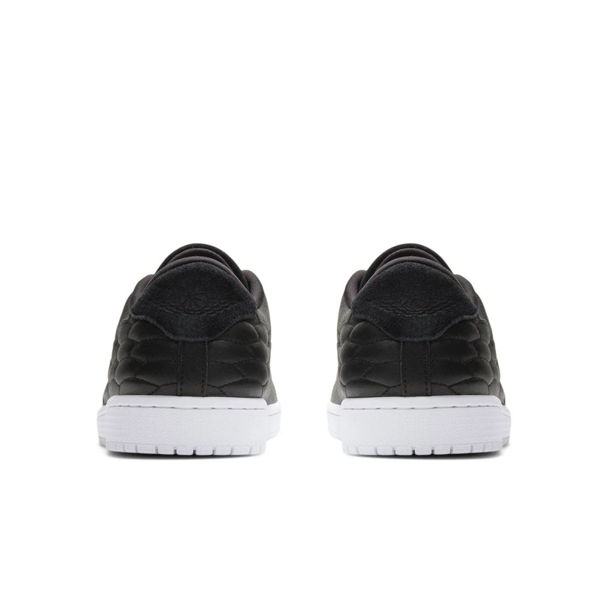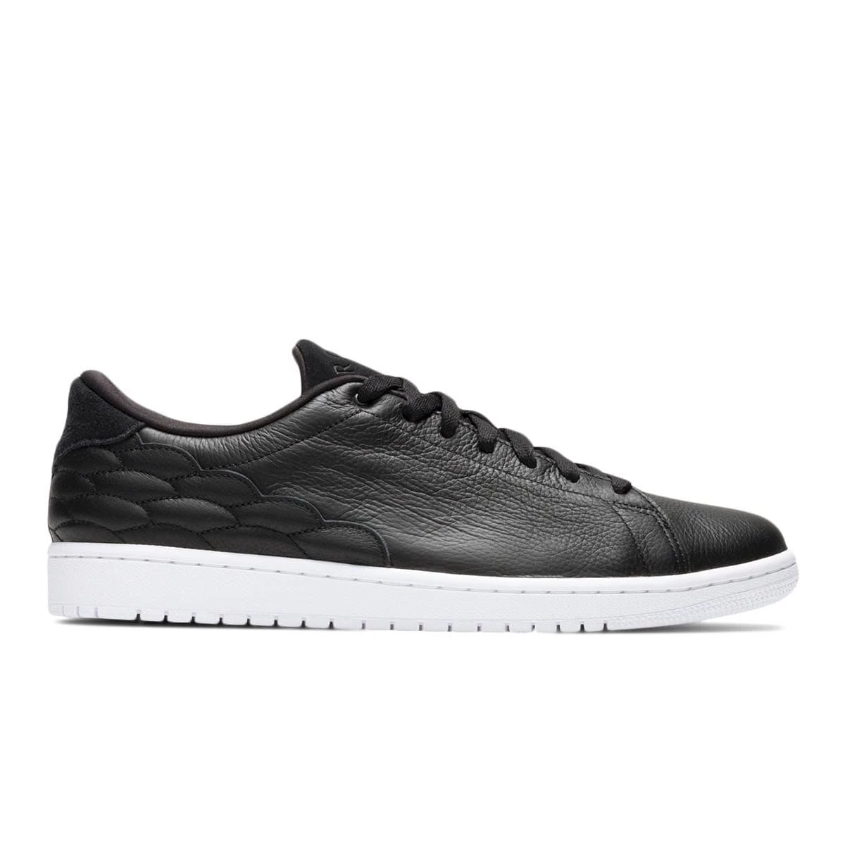 The Air Jordan 1 Centre Court is a minimalist inspired design that applies familiar Jordan 1 design conventions to a classic tennis shoe silhouette. A black take on the Centre Court introduces the renegade ‘banned’ sensibility to the design’s country club-ready aesthetic, with a white outsole adding constrast to the otherwise all-black design.