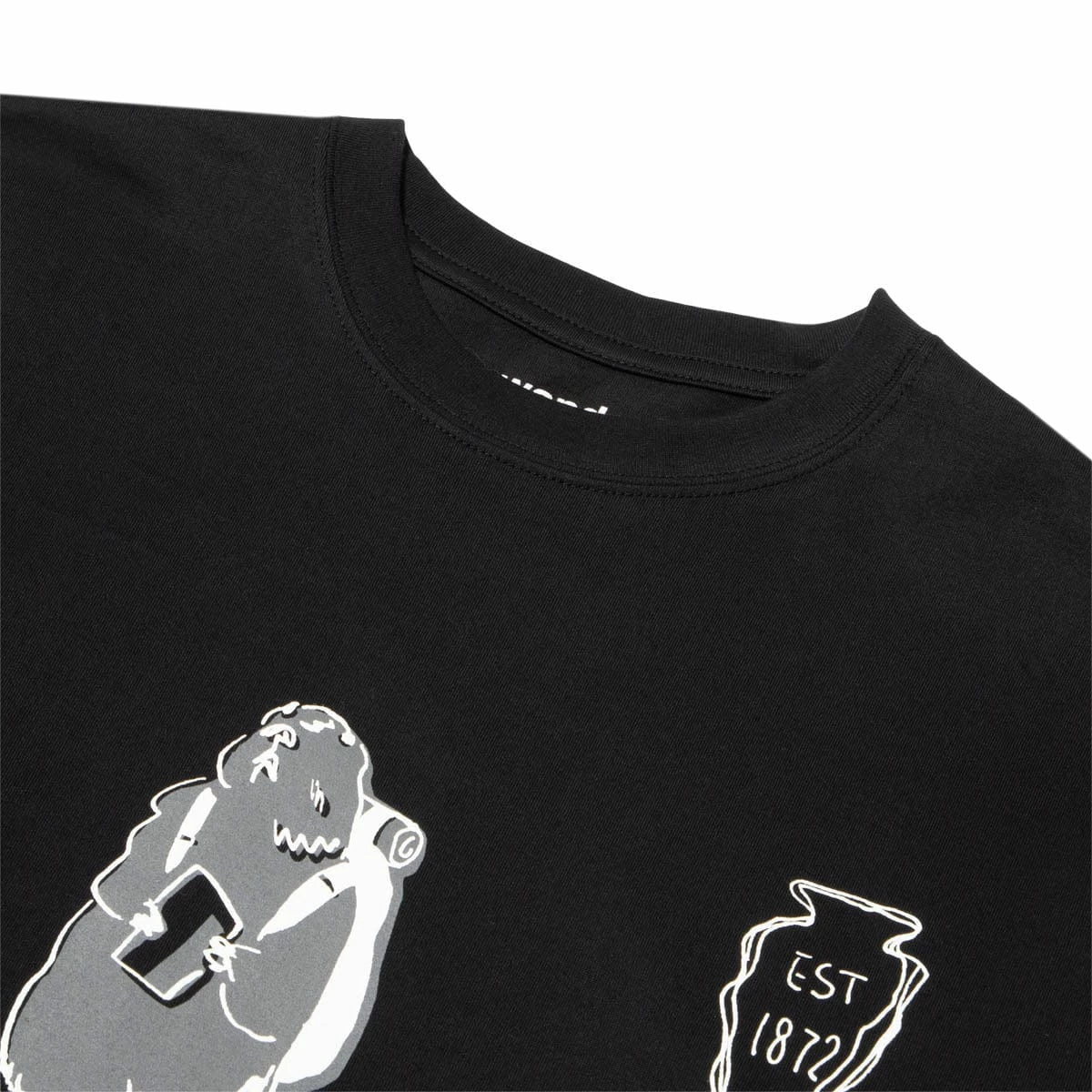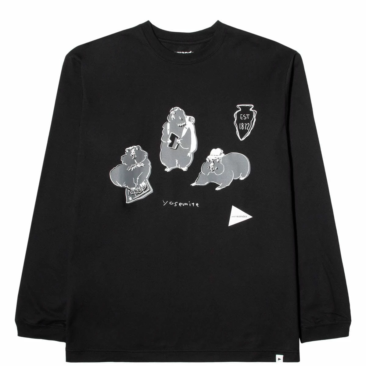 Black short sleeve t-shirt made of high quality cotton. It has an original print on the front of the garment and a label with the and wander logo embroidered on the bottom.
