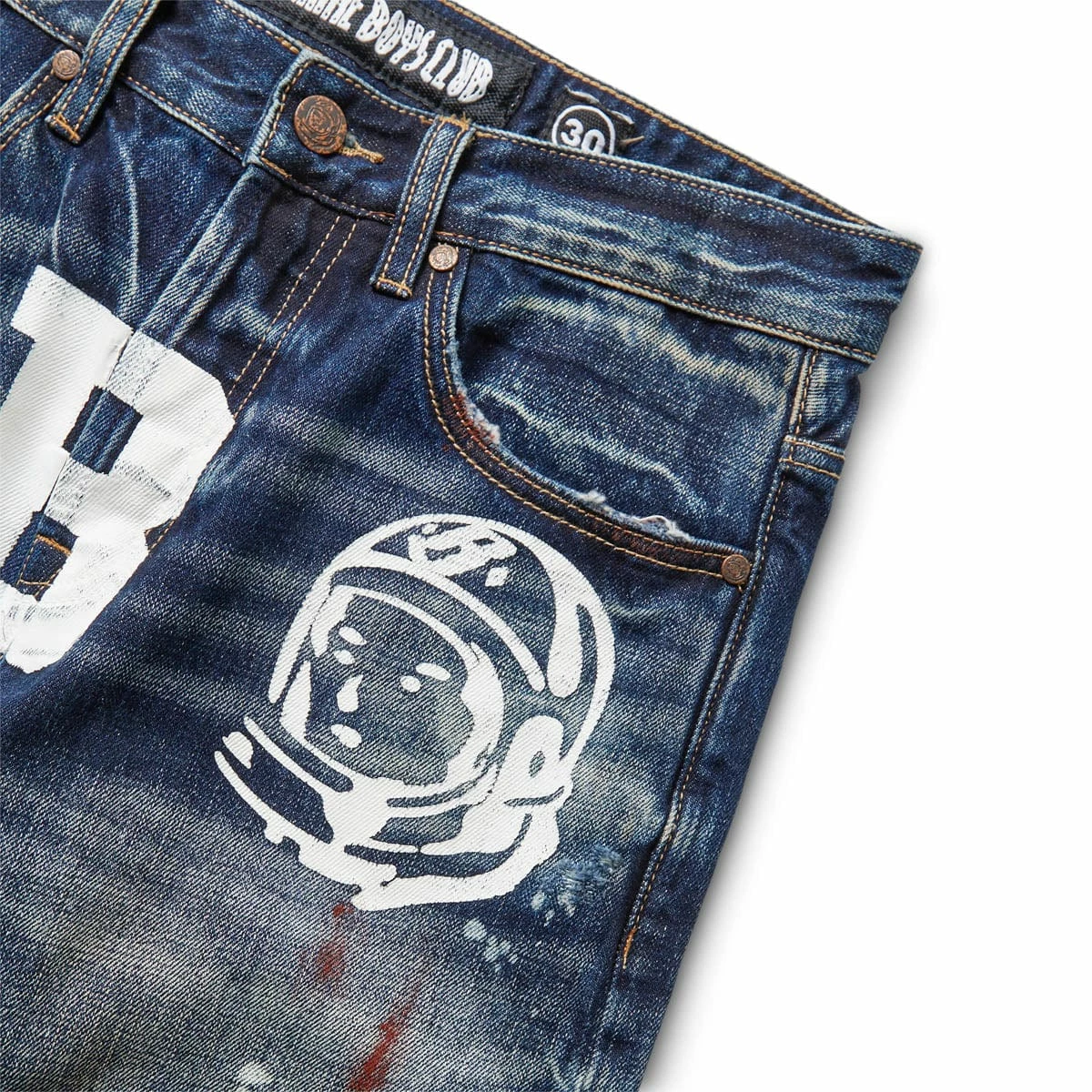 - 5 pocket jean with breaking & print/embroidery