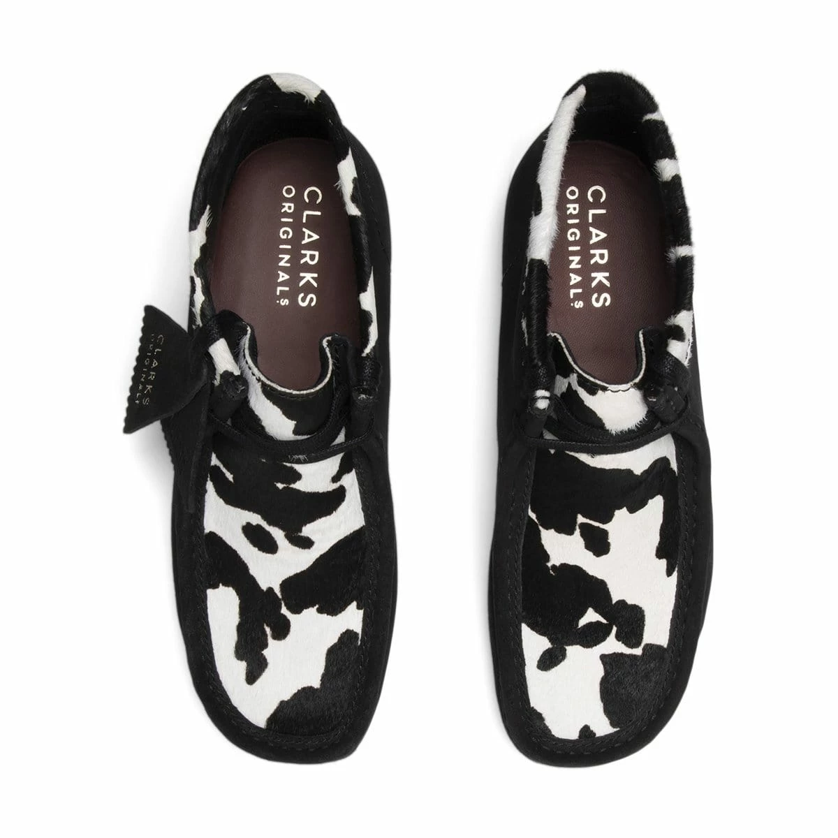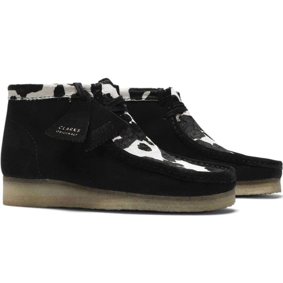 The moccasin inspired upper offers comfort and an aesthetic versatility that adds an individualistic élan to whatever ensemble the Wallabees are paired up with. This individualist sentiment goes into overdrive with a cow printed, premium suede edition of the Wallabee boot.