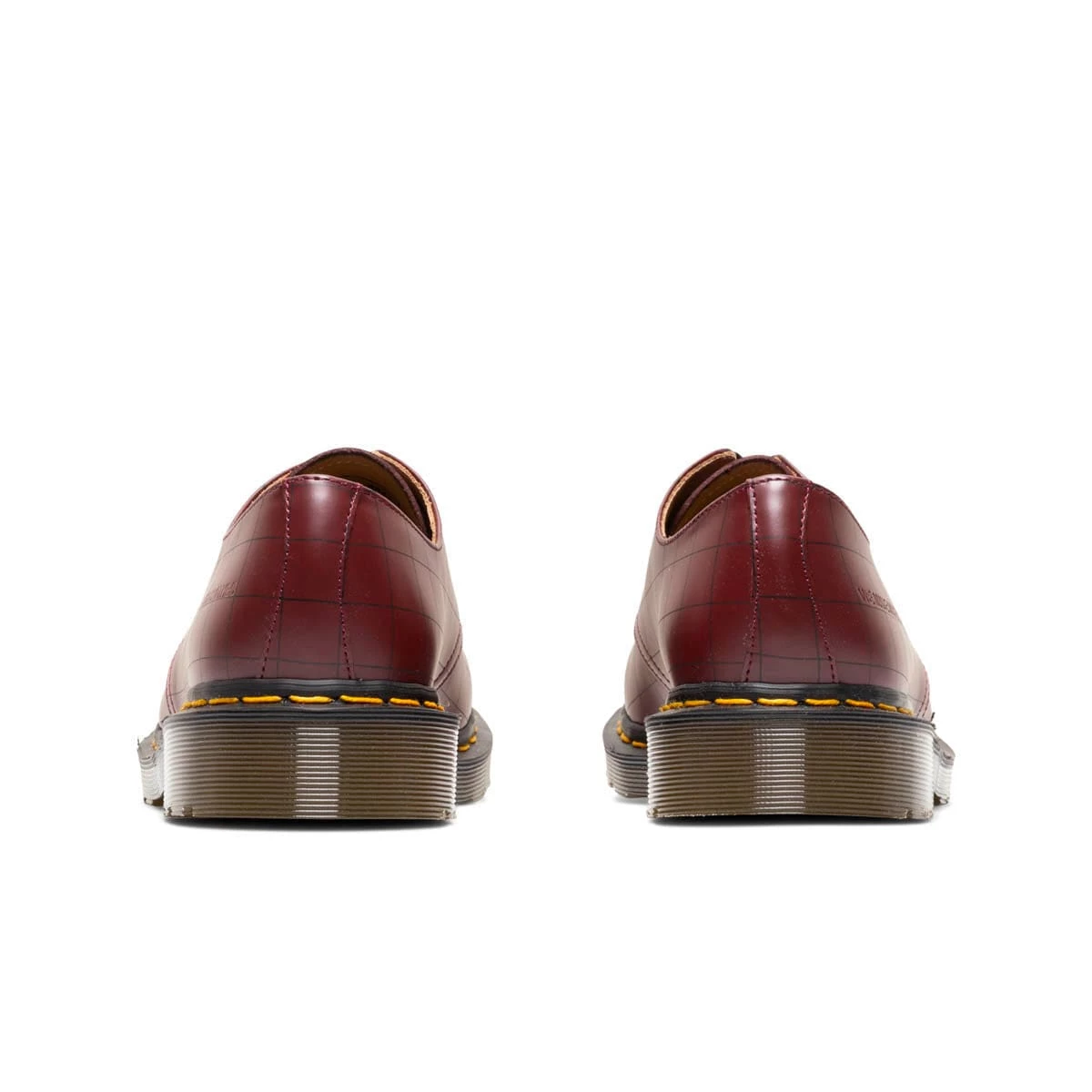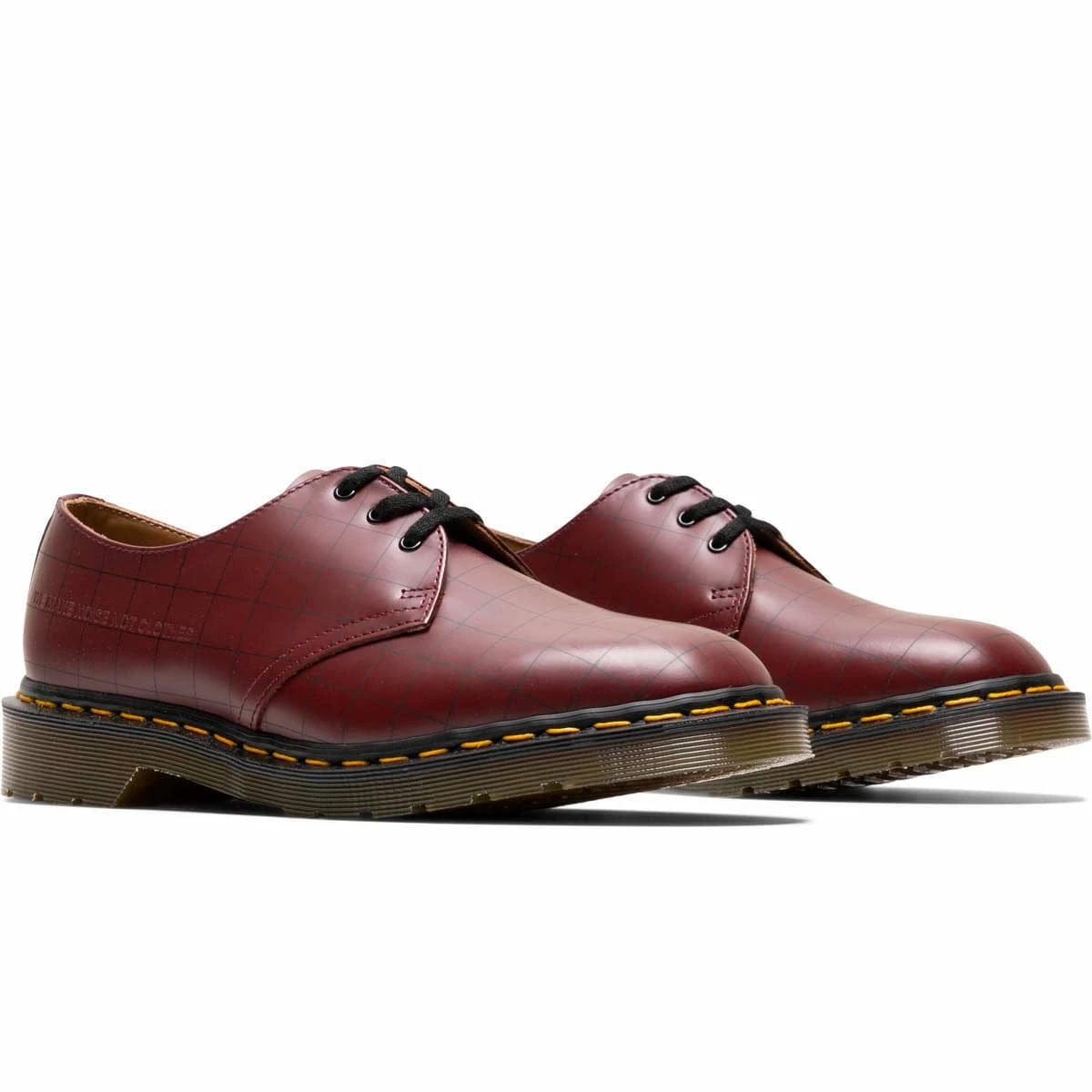 The exclusive Dr. Martens collection in partnership with Jun Takahashi’s punk-inspired Japanese label UNDERCOVER is finally here. Handcrafted in England at the original DM Wollaston factory, the limited edition collaboration upholds the very highest standards of British shoemaking. The low profile Derby silhouette crafted with cherry red premium smooth leather features subtle checkered print throughout and debossed branded applications at toe and side walls. And of course, the distinct DM yellow welt stitching we’ve all come to know and love.Â