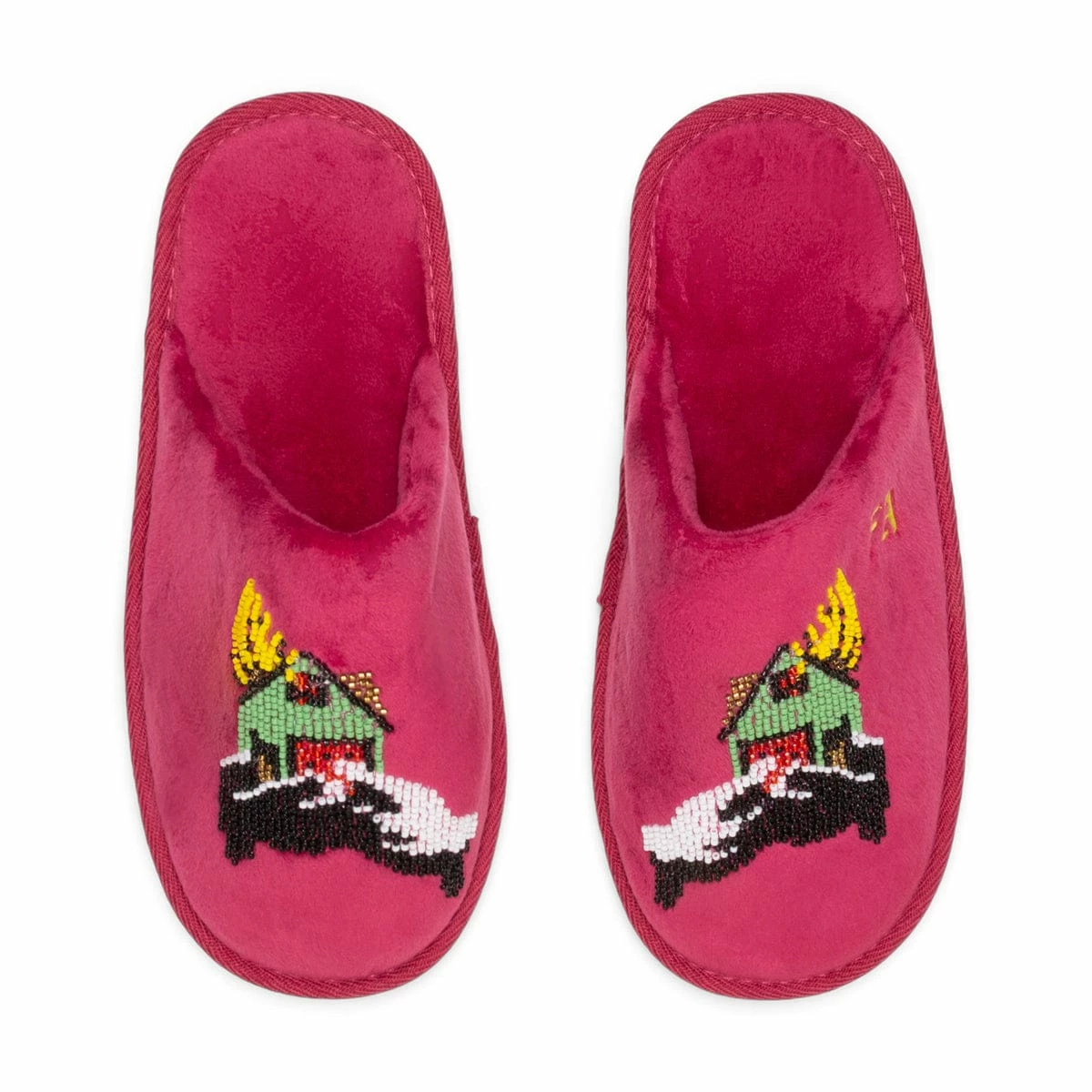 Terry House Slippers with Graphic Beaded on Front.