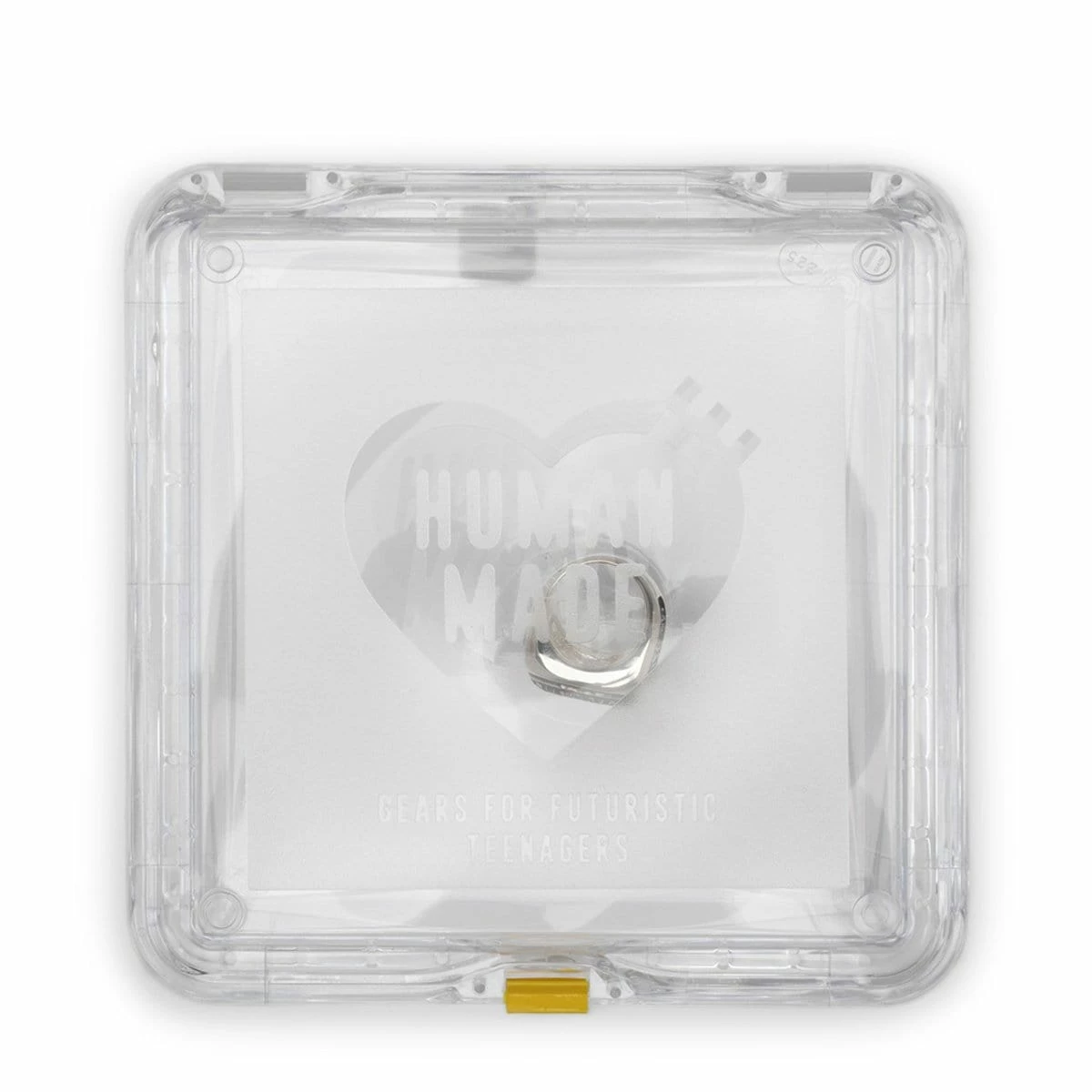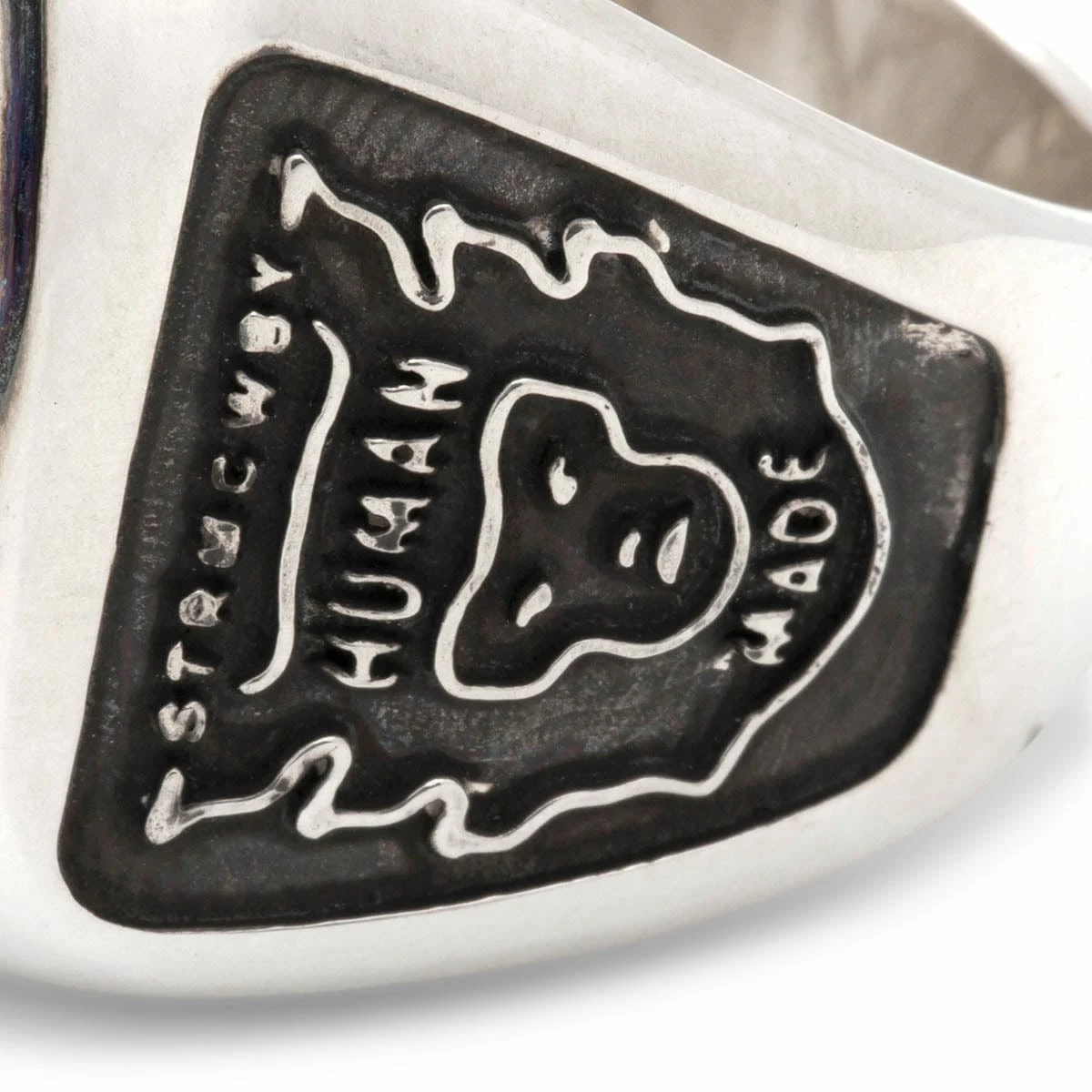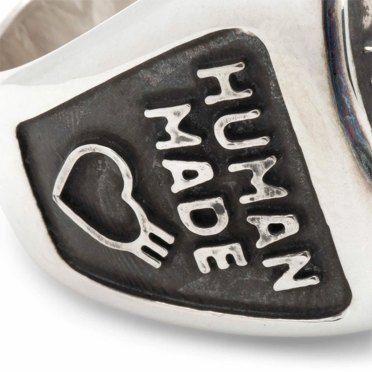 Human Made’s collegiate style ring has two distinct upgrades over the traditional variety. One is the heart shape, the other is that random strangers wont recognize a Human Made ring, and ask you for a job because they went there too.Â