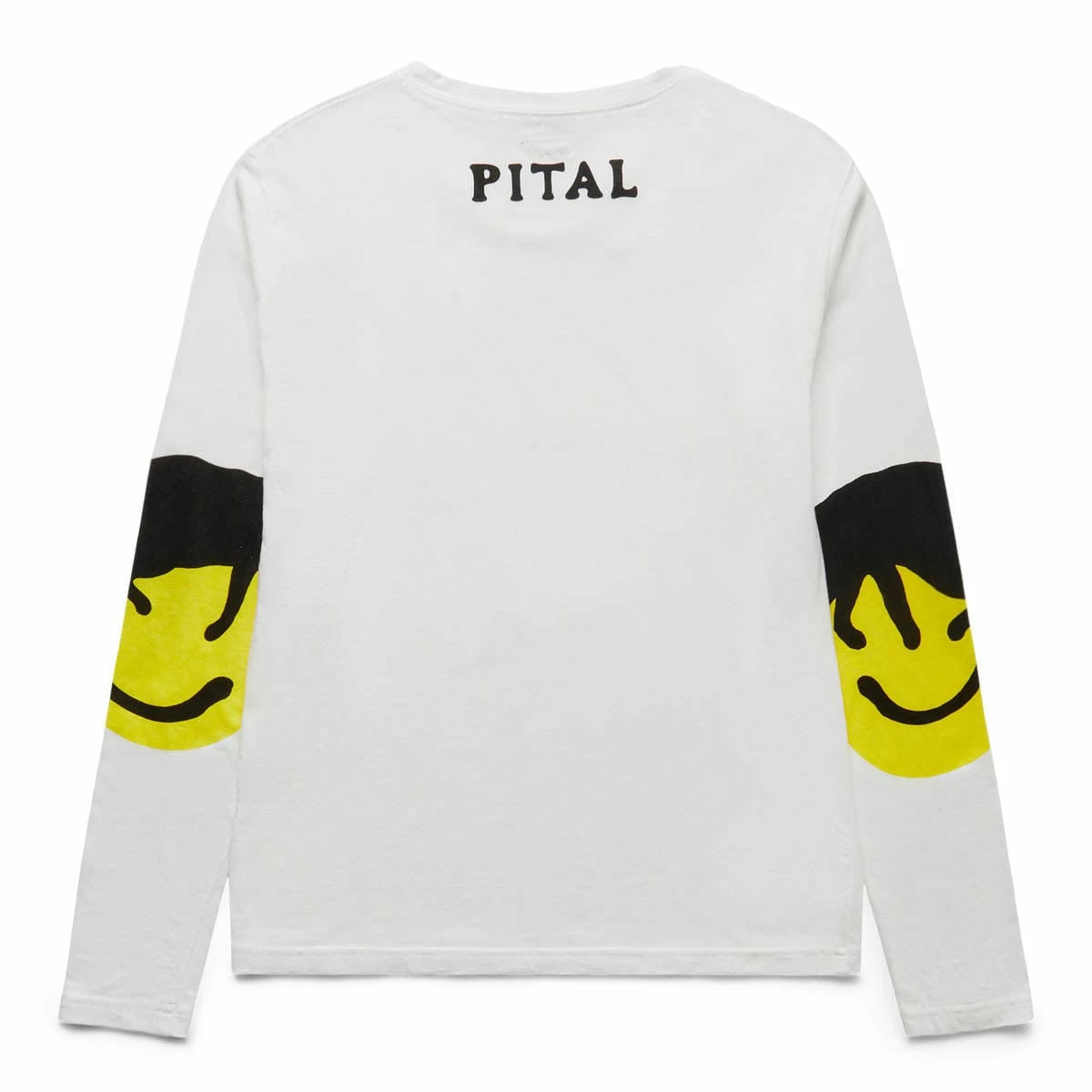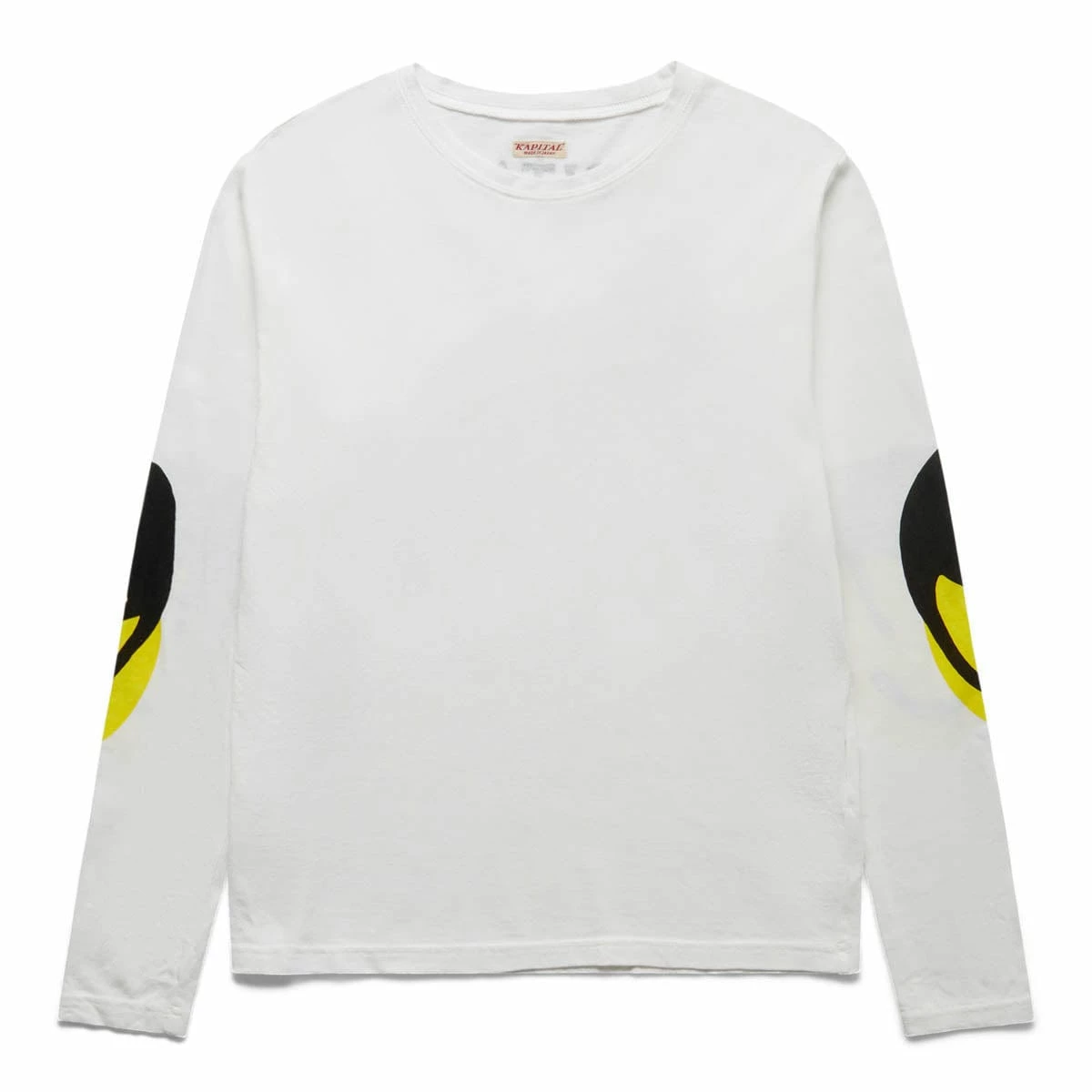 With the reputation as one of the most sought after names in the world of denim and alternate reality Americana , Kapital launched in 1996 and marries impeccable craftsmanship and innovative textile techniques with an intricately detailed, elegantly offbeat signature look, creating some of the most unique, authentic examples of ‘future vintage’ – garments and accessories coveted now that will only become more desirable as time goes on. A classic white jersey long sleeve with a pleasant twist.Â