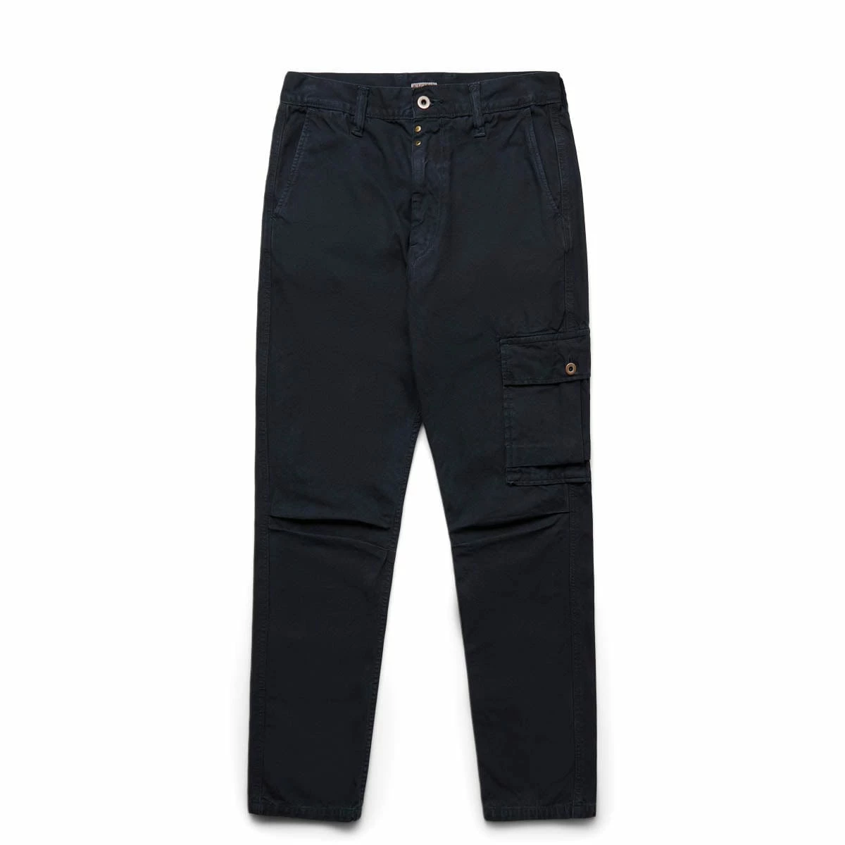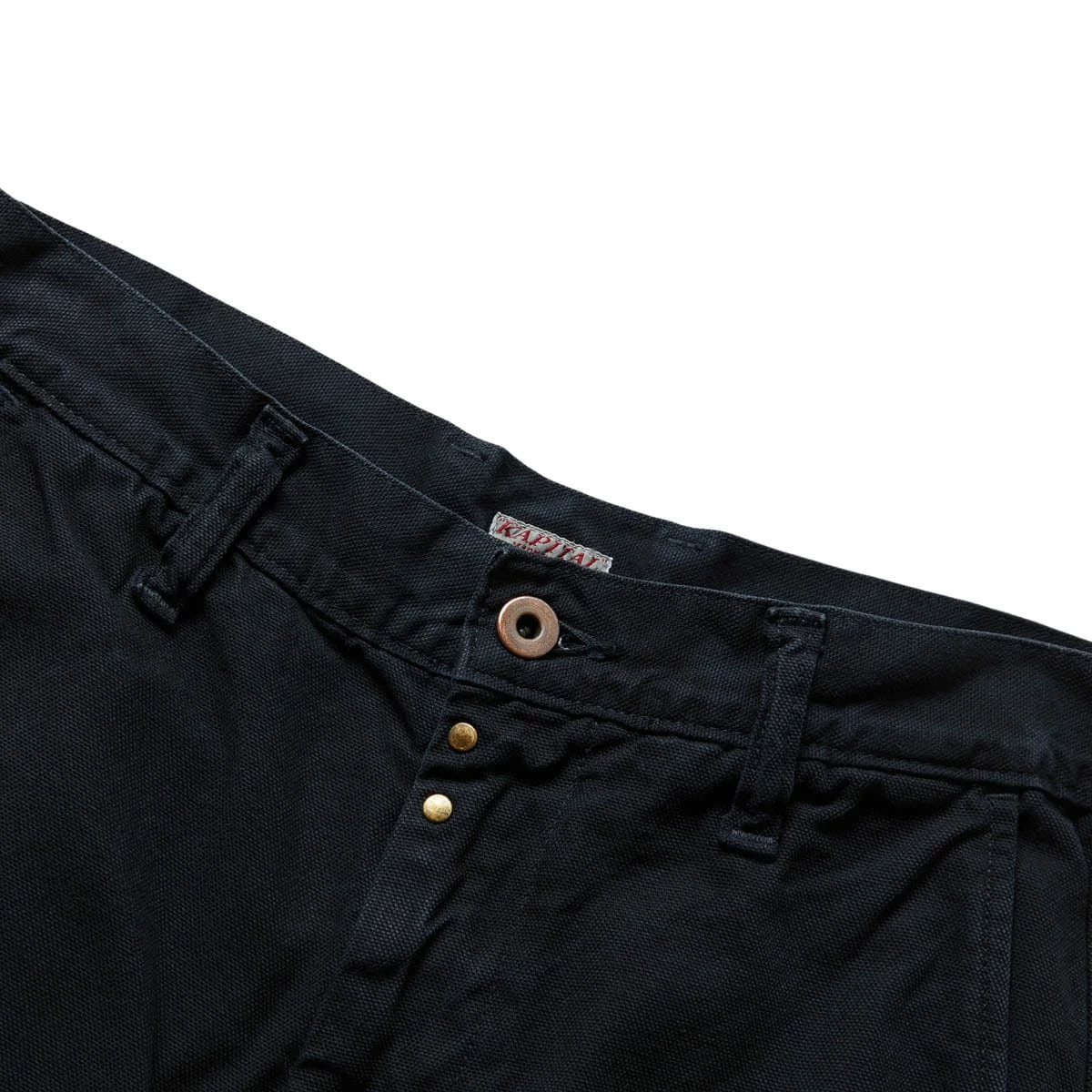 With the reputation as one of the most sought after names in the world of denim and alternate reality Americana , Kapital launched in 1996 and marries impeccable craftsmanship and innovative textile techniques with an intricately detailed, elegantly offbeat signature look, creating some of the most unique, authentic examples of ‘future vintage’ – garments and accessories coveted now that will only become more desirable as time goes on. A unisex, high-waisted pant based on vintage American work style trousers. The pants have been given a contemporary fit and are crafted in a hardwearing soft washed canvas.Â