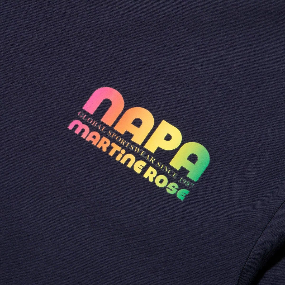 The SS20 offerings from Napa by Martine Rose, the union of acclaimed menswear designer Martine Rose and the upscale outdoors adventurism of Italian label Napapijri, is said to be based around the mental and physical explorations of British surf trips. With retro graphics and a vibrant color palette, they continue to wear their inspirations on their sleeves… and chest and back.