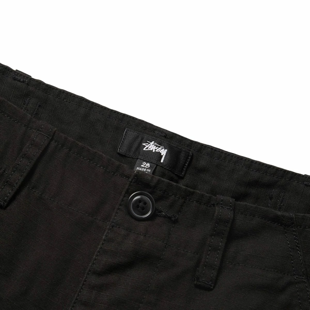 - Piece dyed, enzyme washed ripstop fabric