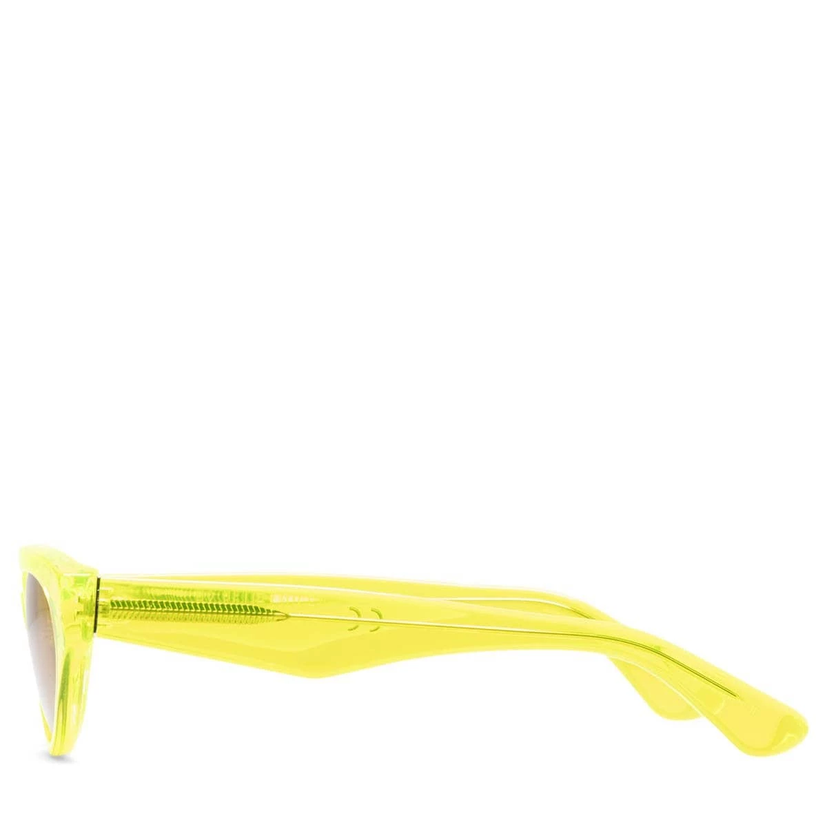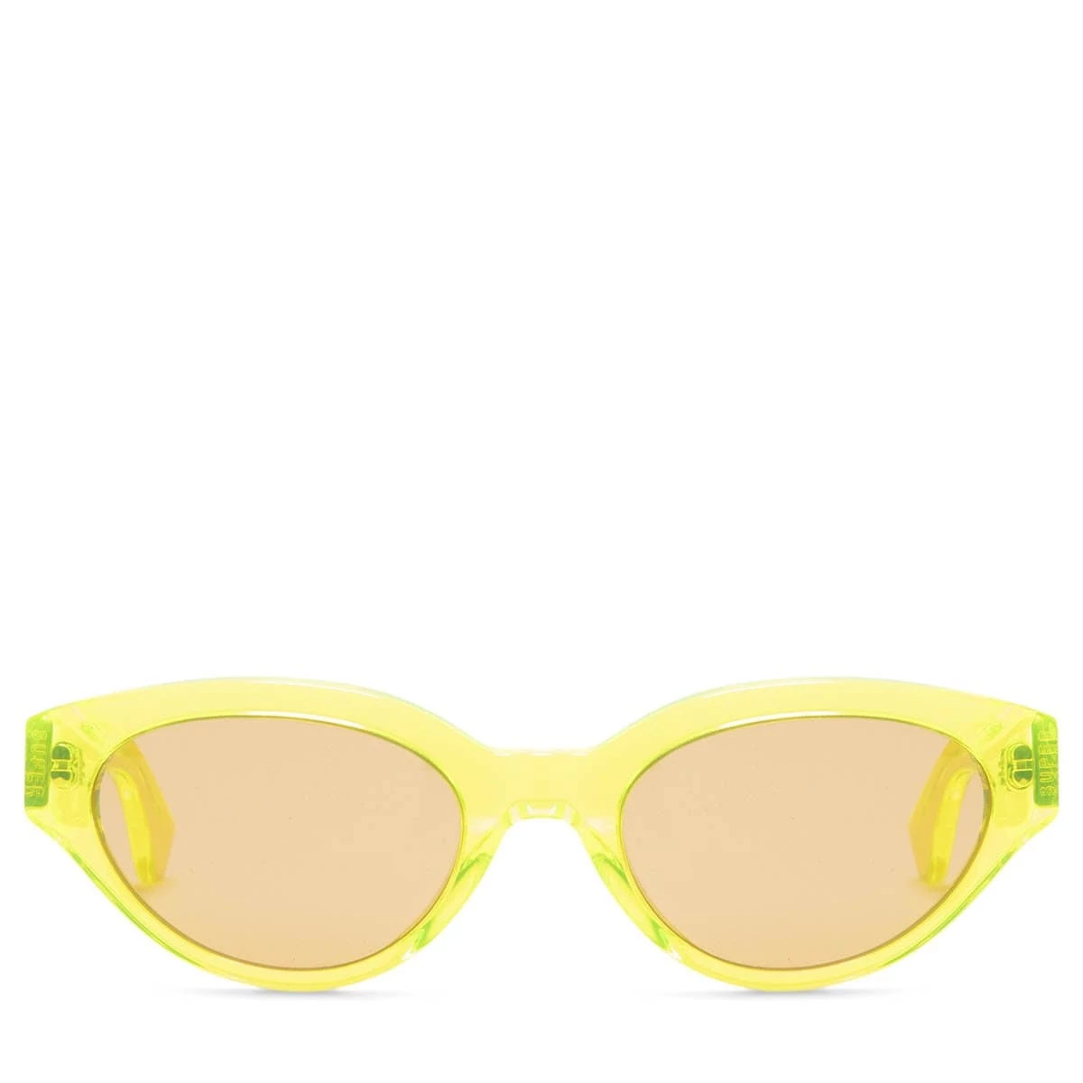 An iconic SUPER silhouette, Drew is a timeless frame that interprets 1960s references with a contemporary aesthetic. Characterized by a cat-eye profile, with wide oval lenses and protruding temple-tips, Drew is sharp but classy model. This version features a neon yellow acetate and light brown tinted lenses. The box contains a semi-hard case and a cleaning cloth.
