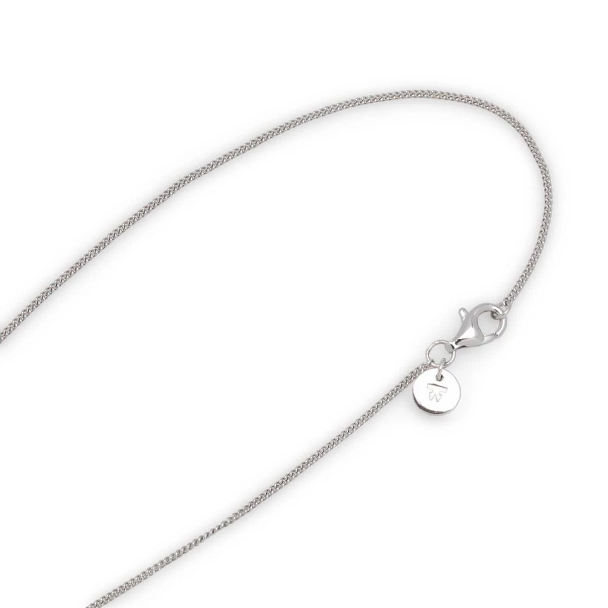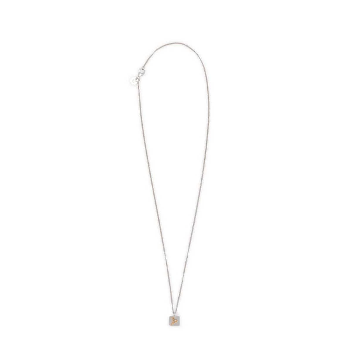 The Mined Pendant is made of high quality 925 sterling silver, plated with white rhodium to strengthen the surface and prevent tarnishing. The 14K gold-plating has a satin finish to define the contrast of the sparkling white diamond, and the polished silver shank.